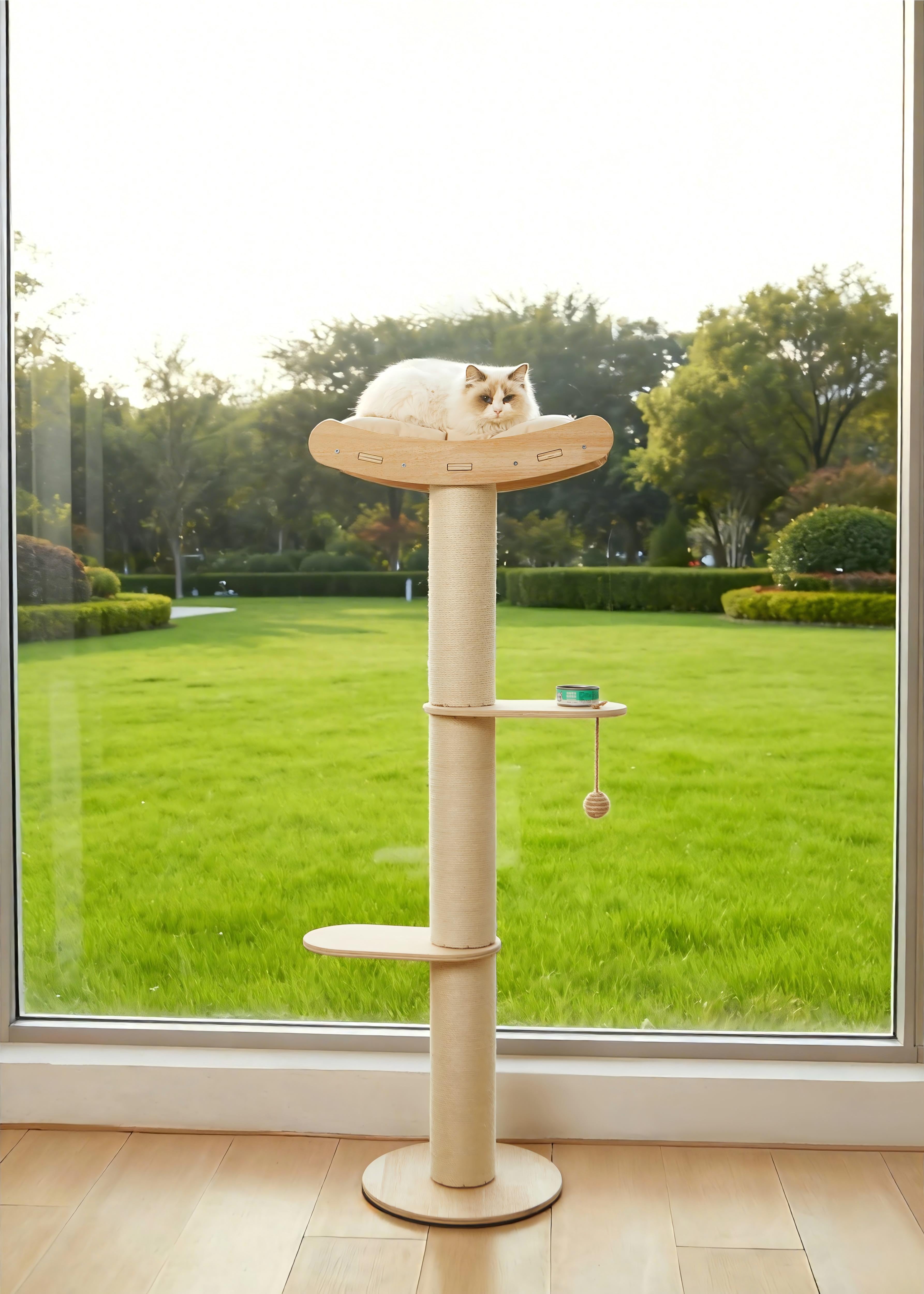 Wooden Cat Tree With Suction Cup