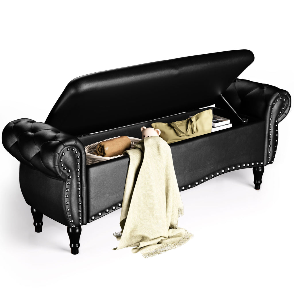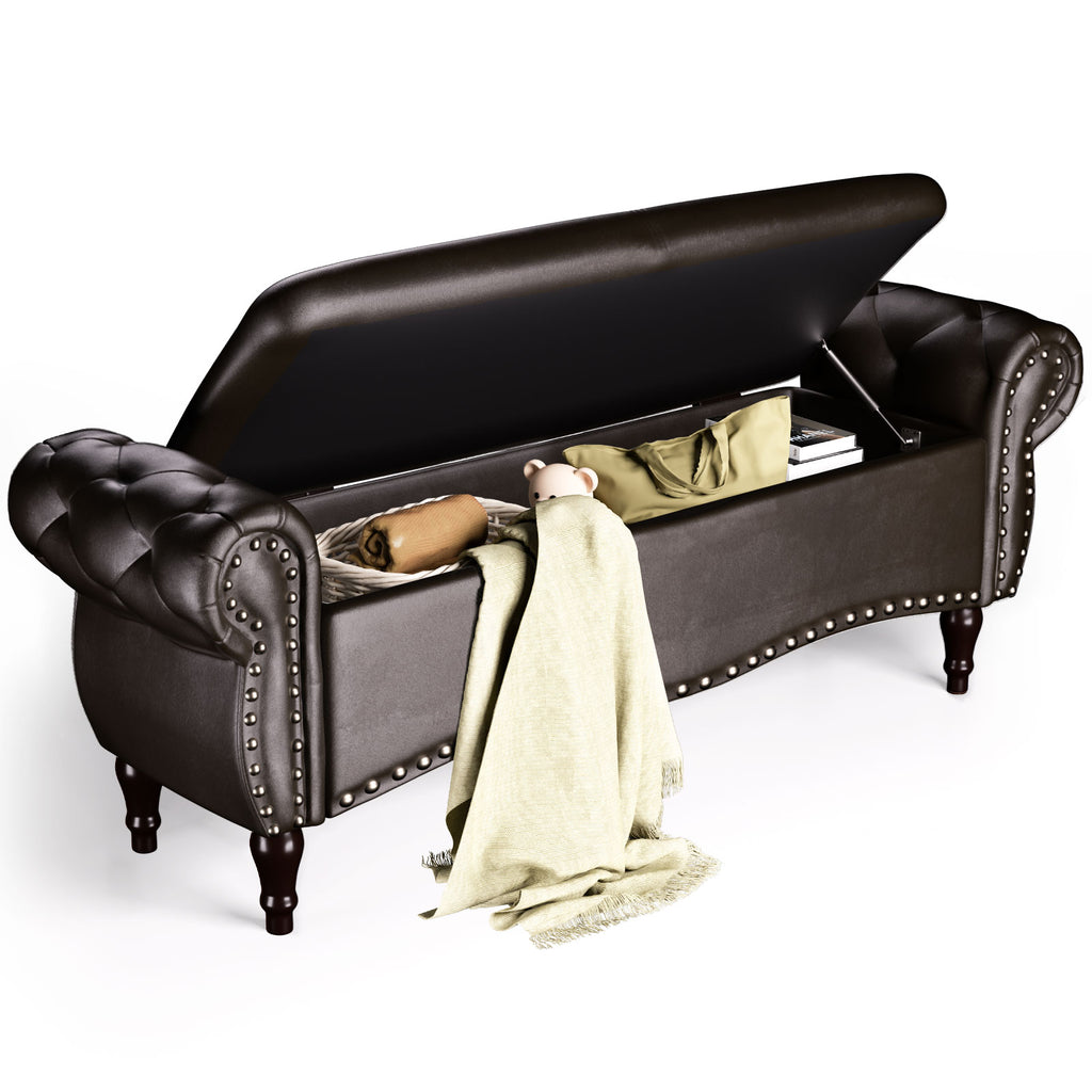 • 【Create Popular Style】: Fits all sizes of beds, placed at the end of the bed. This bench has rolled edge arms and nailhead trim. Unique styling adds elegance and fashion to your home. The foot pads also protect your floors by preventing scratches