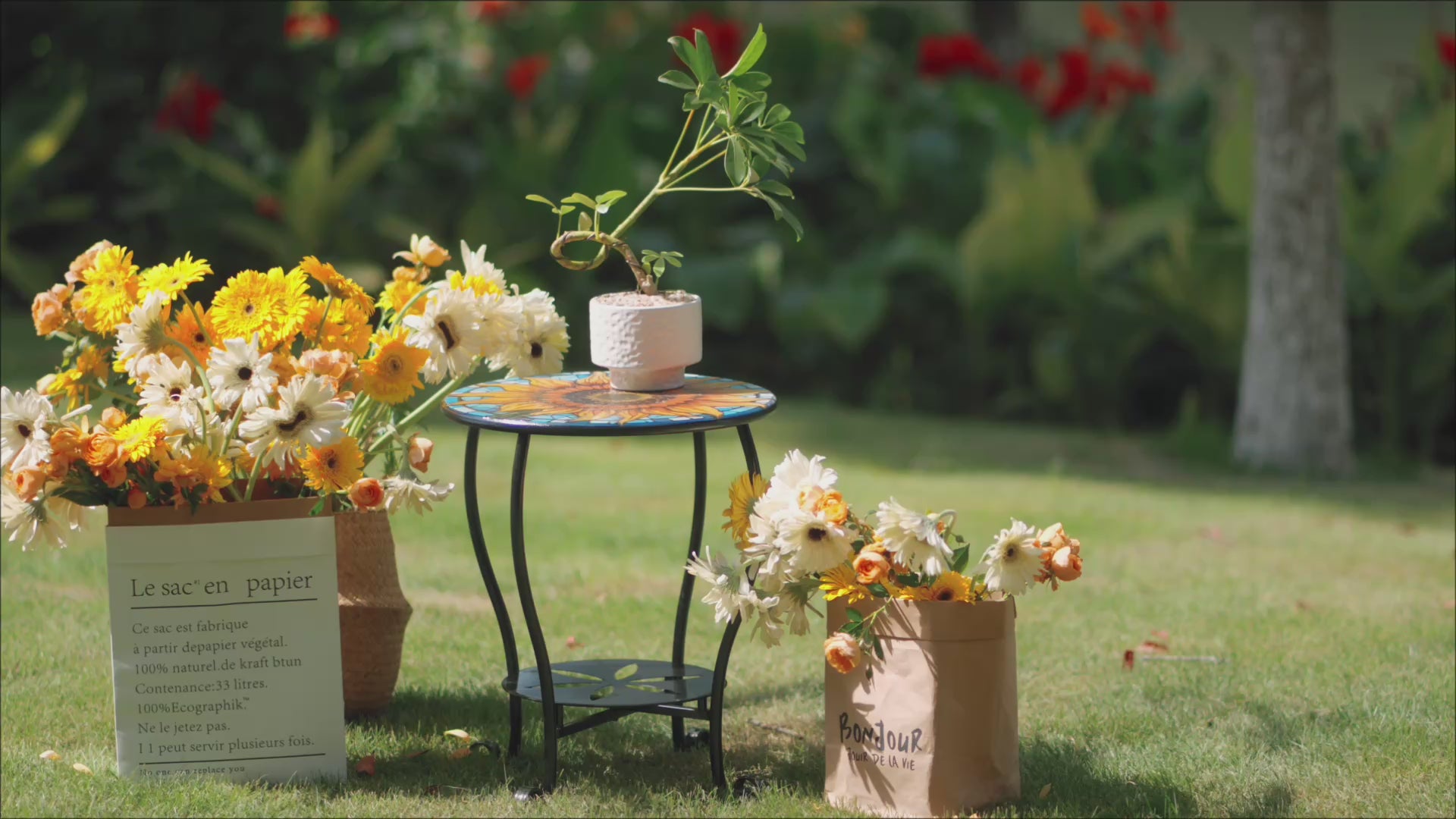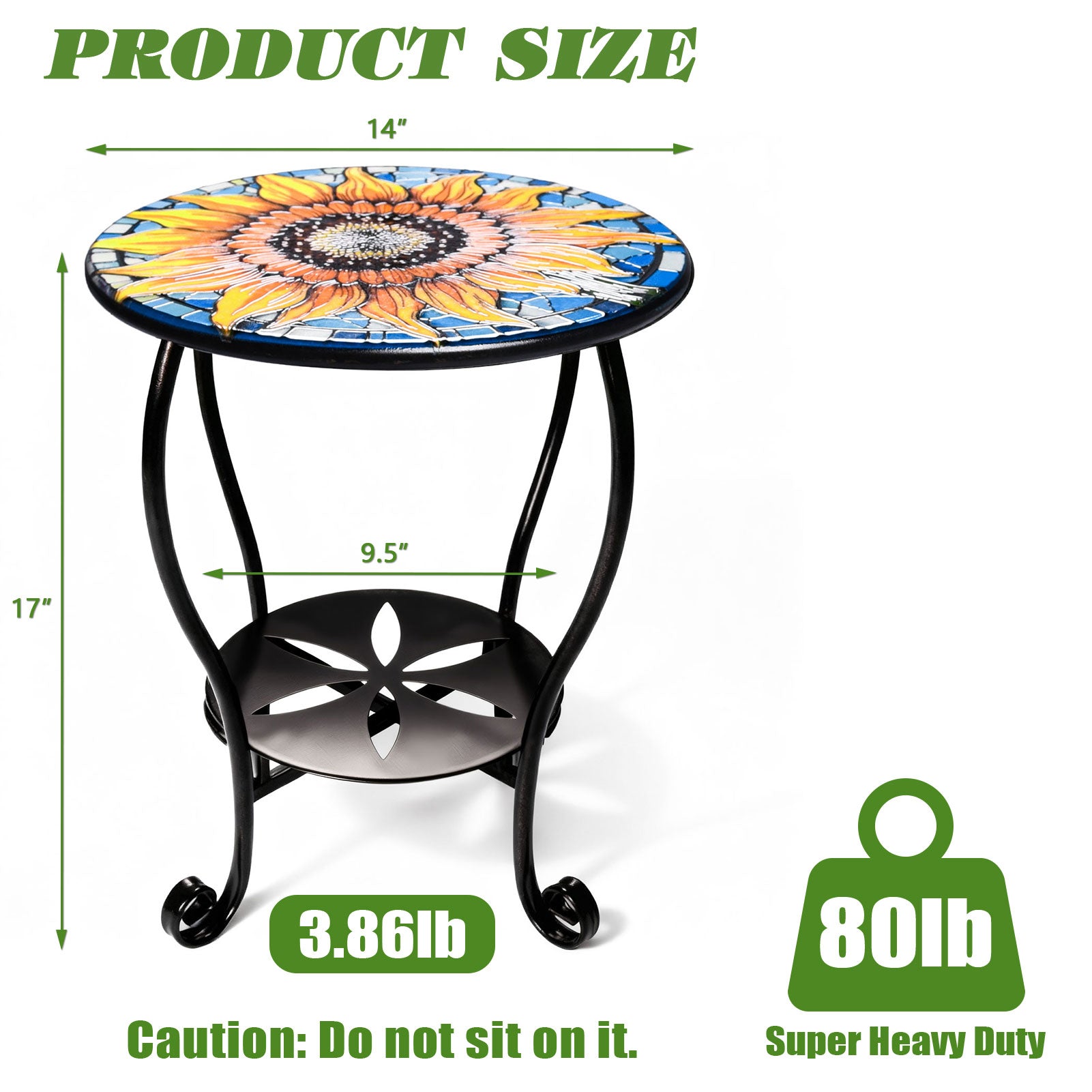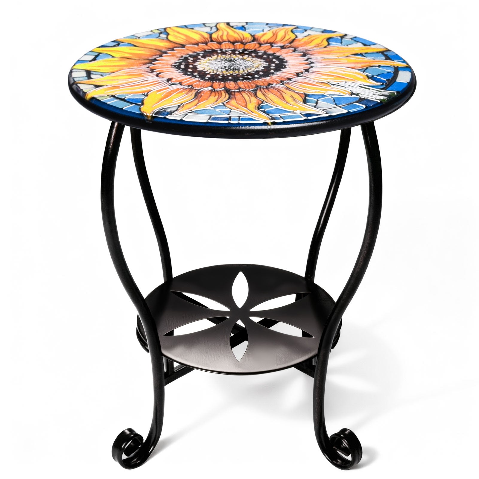 Elegant & Refined Pattern Design: Featuring a vibrant design with sunflowers, butterflies, and blue flowers, this side table adds color and elegance to your garden, patio, or interior.